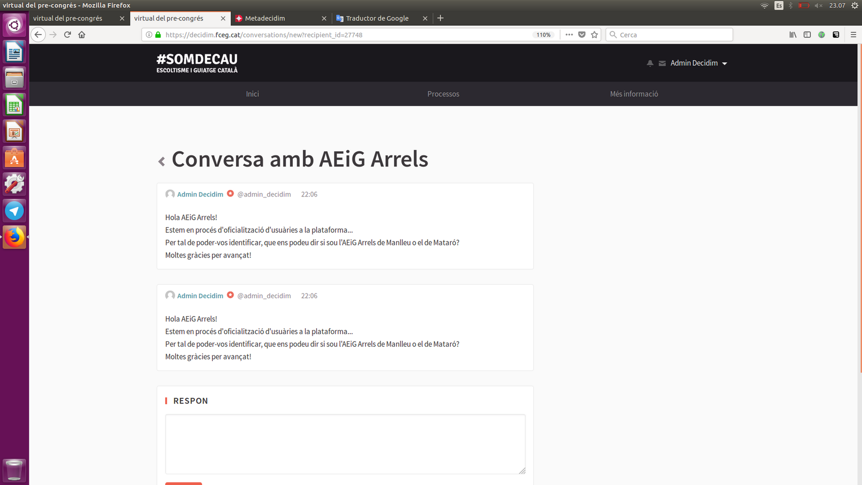 There's an old bug on v.0.9.3 for the multitenant decidim.organizations, messages appear duplicated at least on conversations.