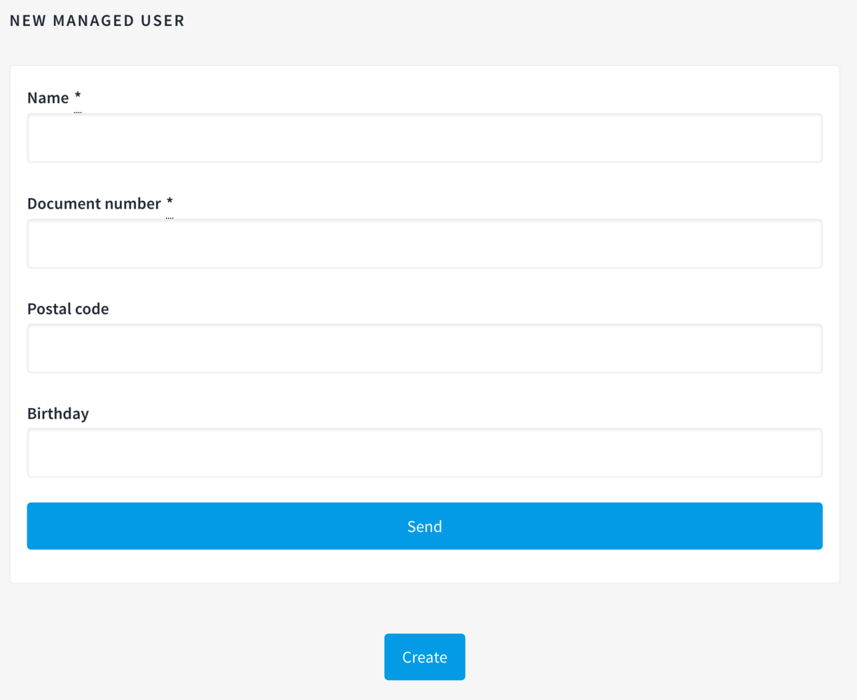 Two buttons "create" and "send" when creating a managed user