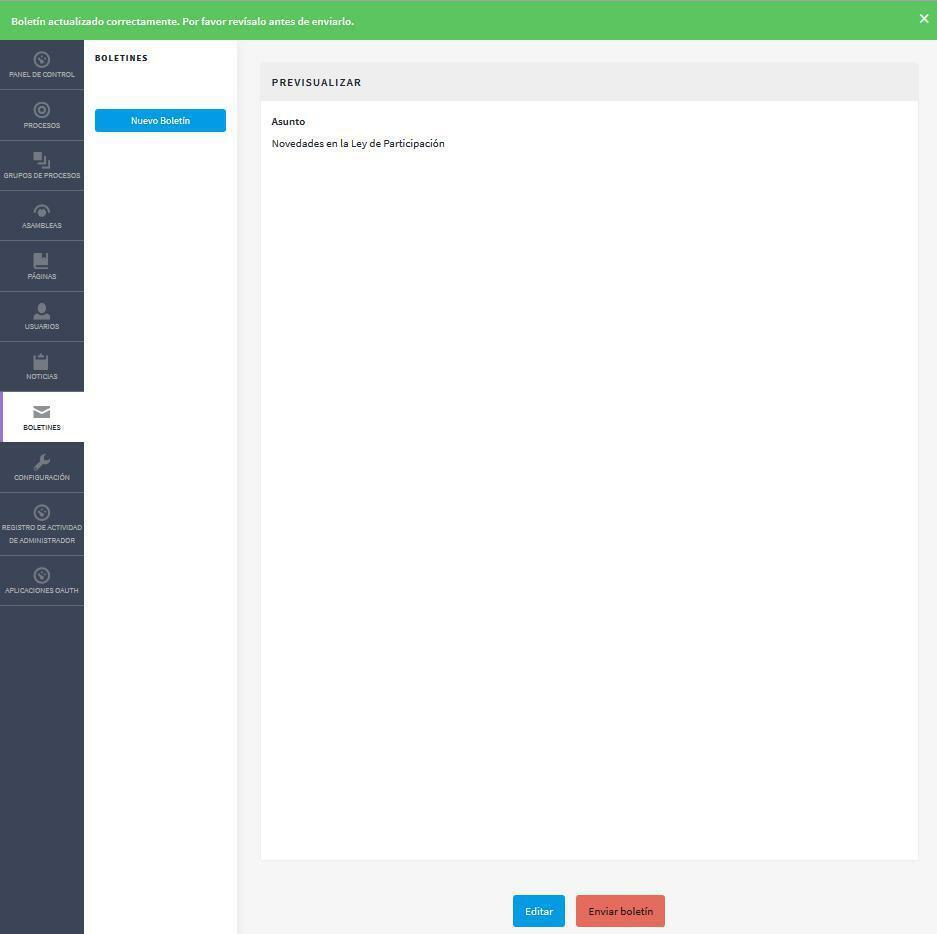 The preview of bulletins in the previous step to send them does not work correctly.