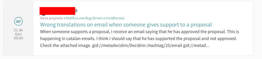 When I go to my public profile, in the section of the timeline, if there hashtag is not rendered. +info: Look the image below