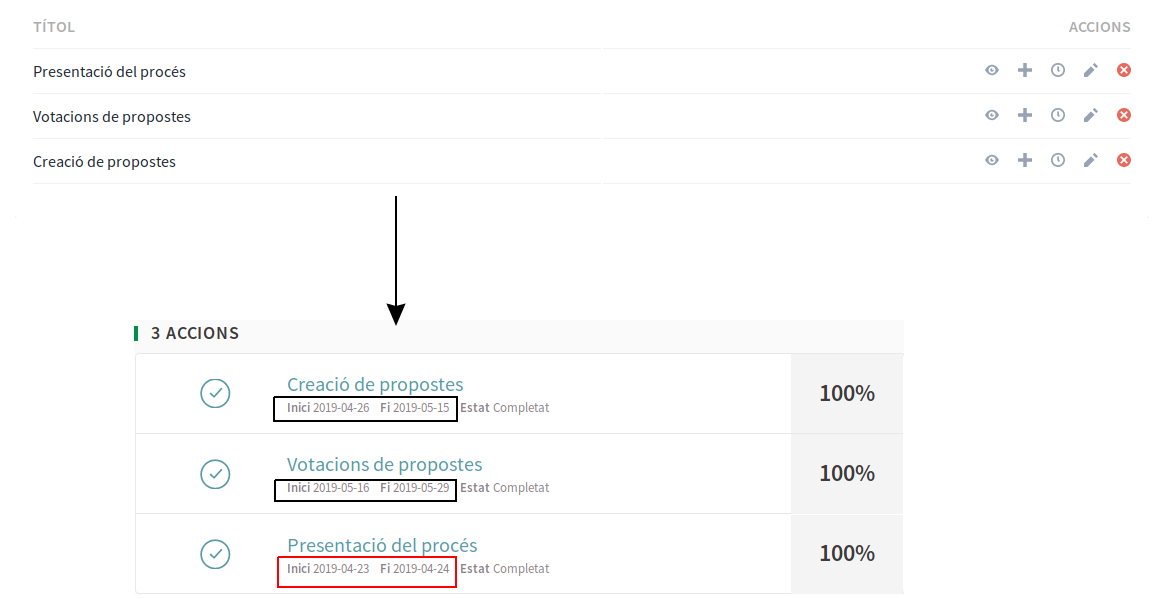 To reproduce the error: 1- Enable the component accountability 2- Create a result 3- Add results within the created result 4- Note that if we are adding results in the backend it is sorted chronologically and in the public view in order of creation. I don't know if this really is a bug or a feature. In the comment I ping a product if they could answer the question.