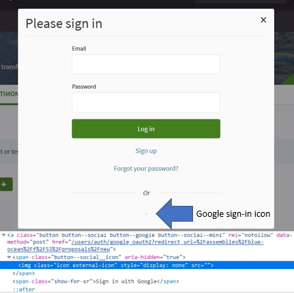 Google sign-in icon reduced to tiny size when unregistered user makes new proposal