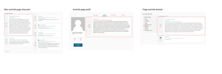 Blocks that are missing this information : - Public profile "Activity" tab - Recent activities home block - Last activity page