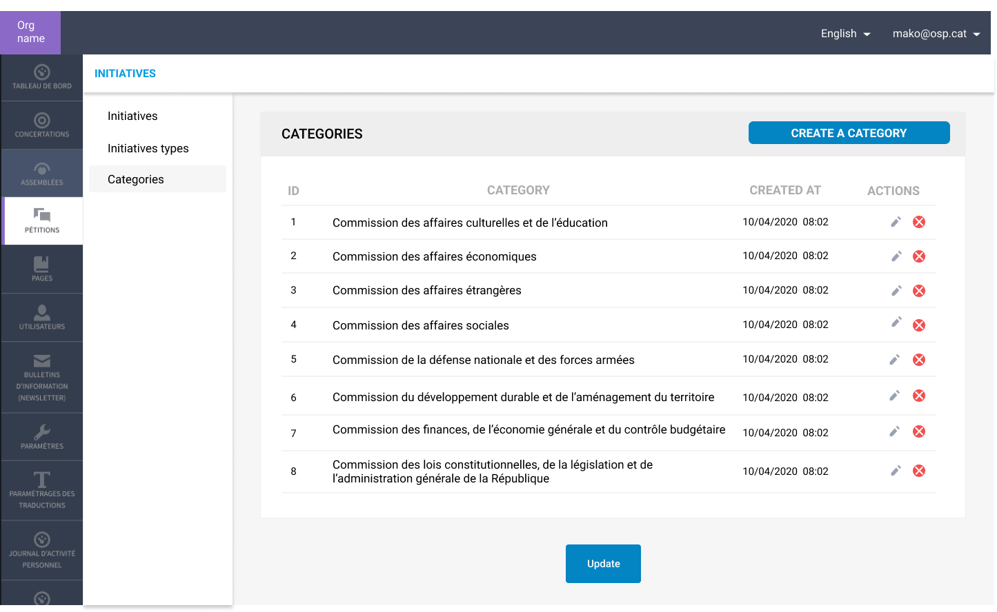 - Add a dropdown field on the /edit form of initiatives that displays all the categories created.
