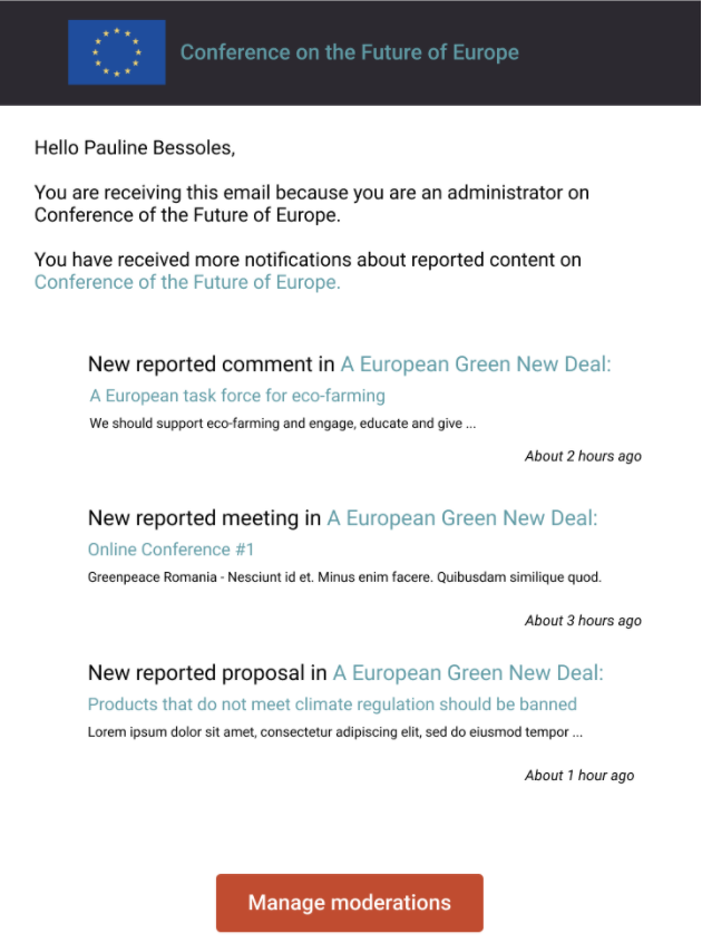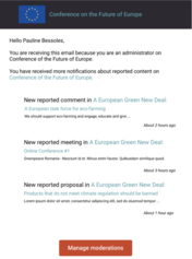 Send a daily digest with all the new content to moderate and a button to manage it.