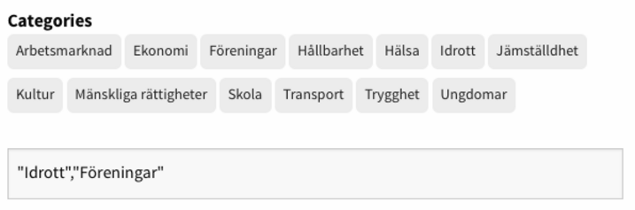 A list of categories that participants can click so they get added to a text field (see screenshot from CONSUL)