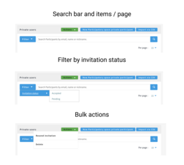 Managing private spaces can be hassle has the list of invited users has no search capabilities. So for example when I need to revoke access or send again an invitation I have to use the pagination. If I have a couple hundreds of private users you can figure how many pages I have to go through to find the user I'm looking for.