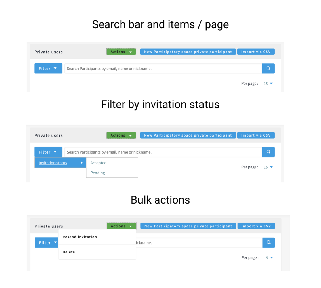 - I'd like to perform bulk actions : like "delete" or "resend invitation"