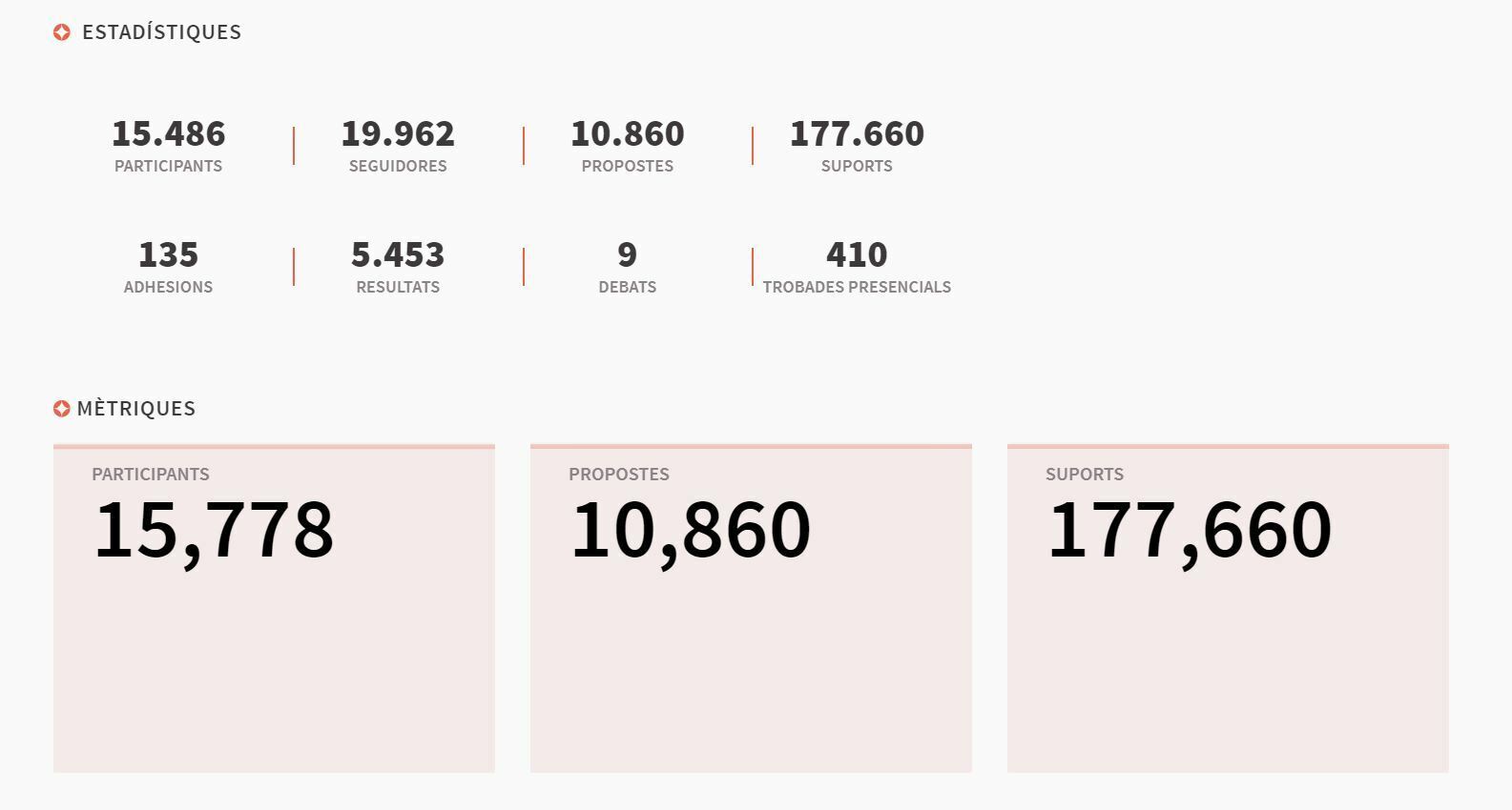 The objective of the tab “Què és” (example) is to inform about the specific process and how the citizens participate in the open assembly. We think that an important improvement can be done on the graphics because the concepts shown are often not explained, which hinders their interpretation.