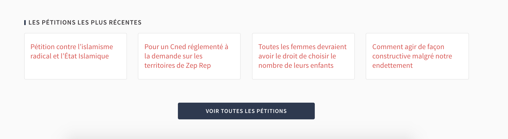 We should come up with something more dynamic to show different initiatives to the user visiting the homepage. This in my opinion a social contract to provide equal chance of visibility for all petitions.