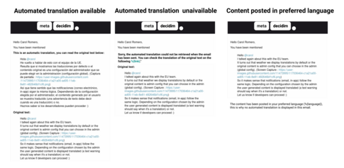 As an admin or moderator of a participatory space, I receive an email notification when a new content is reported. Sometimes the content I receive is not in my language which makes the moderation really hard. I have to click on the link to go on the page and see the machine translation.