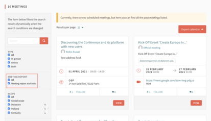 As a user I want to be able to filter the meetings' list to see meetings that have a meeting report (closed).