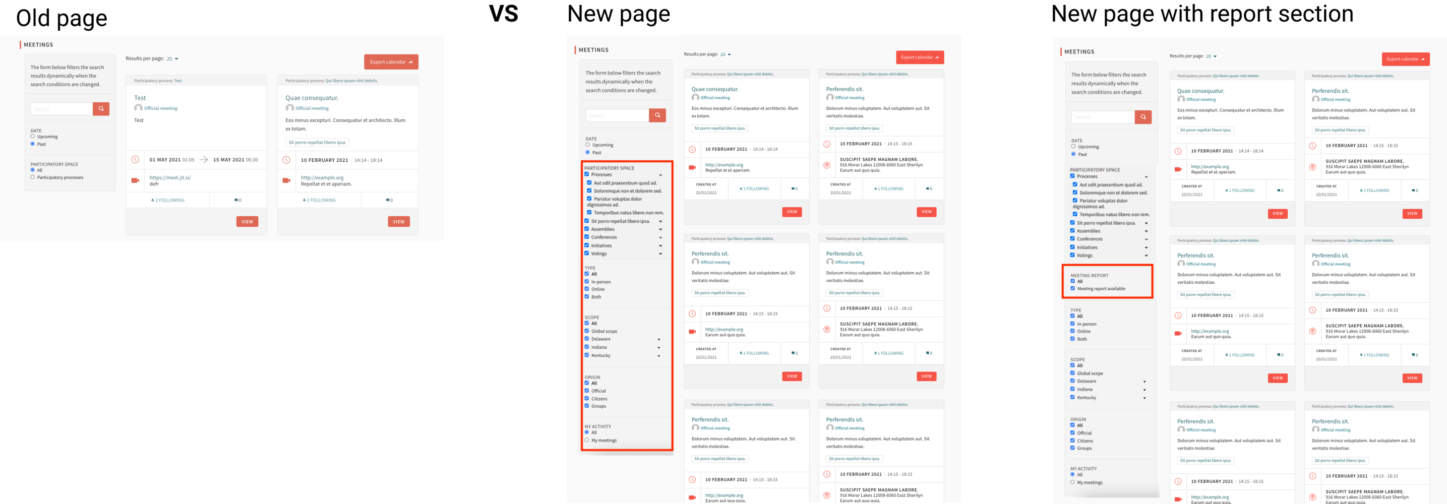 As a user when visiting which shows all events on the platform /meetings I'm frustrated that I don't get more filtering options that I have on the component's index page.