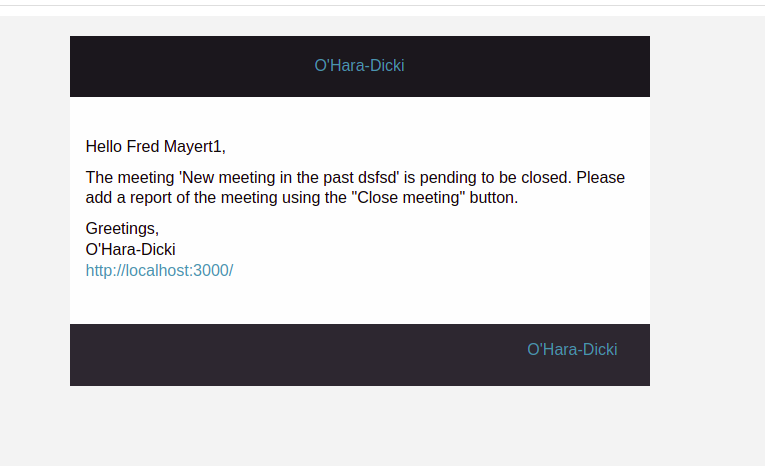 The meeting [MEETING TITLE] is pending to be closed. Please add a report of the meeting using the "Close meeting" button..