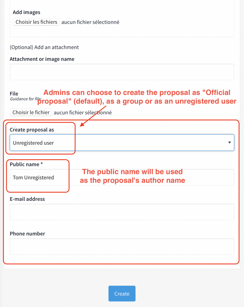 - At a later stage, the possibility of associating several unregistered users and their respective contact details to a single proposal could be added.