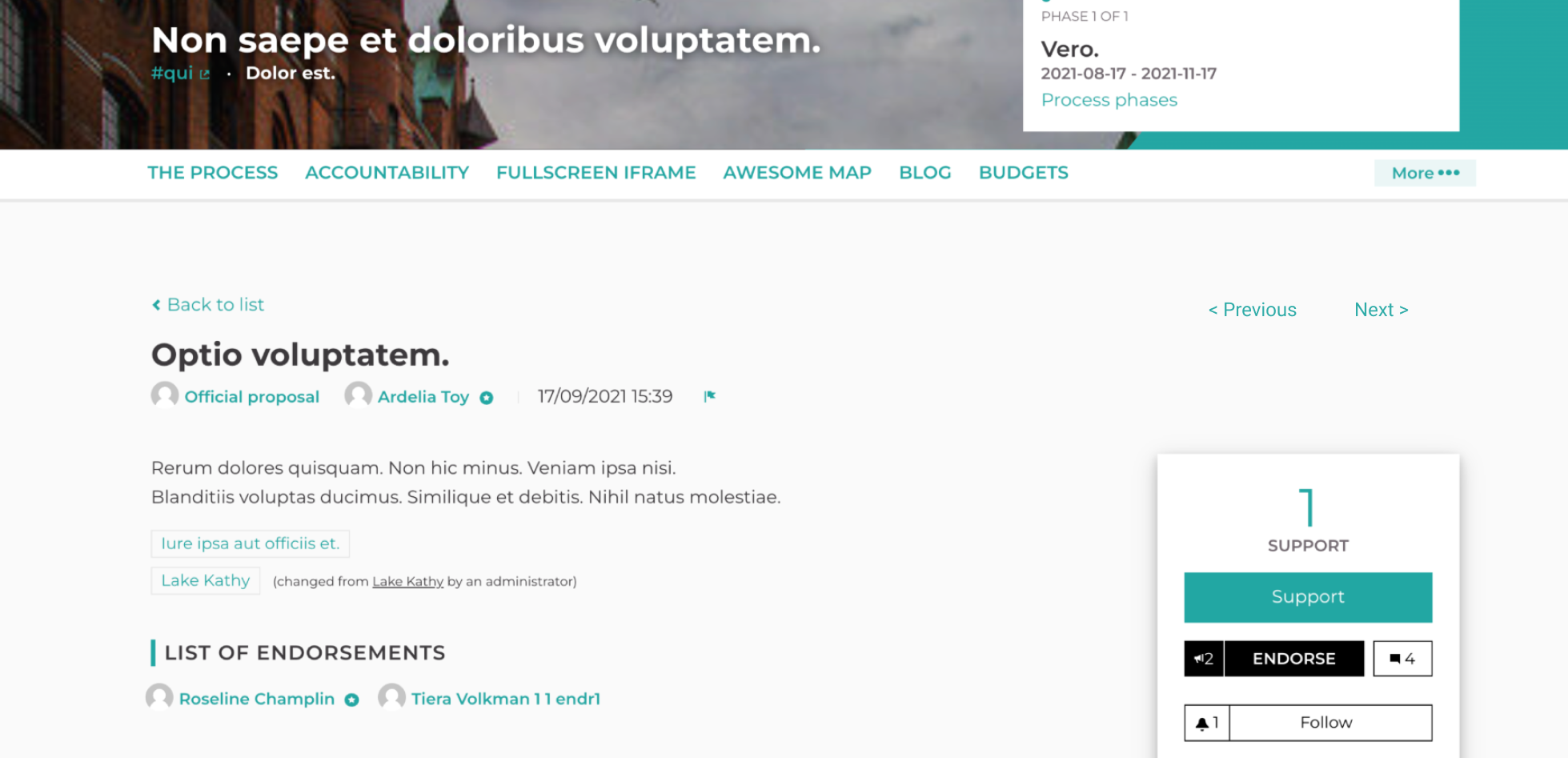 Currently, when a user is on a proposal page, in order to go to read another proposal she has to click on "back to list" to go back to the proposals index and click on a another one. The feature we would like to propose is to be able to navigate from one proposal to another without having to go back to the index.