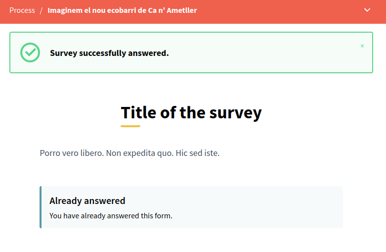 Right now Decidim does not allow survey respondents to get a summary/list of their answers to a survey. In some occasions it would be useful for the respondents to get such information either through the survey answer page or automatically to their email or both.