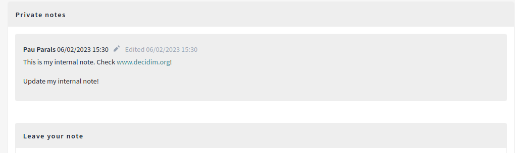 As an administrator or valuator, I have the option to make private notes on a proposal response. Sometimes I misspell or miss writing something. Currently, I have to make a new comment.