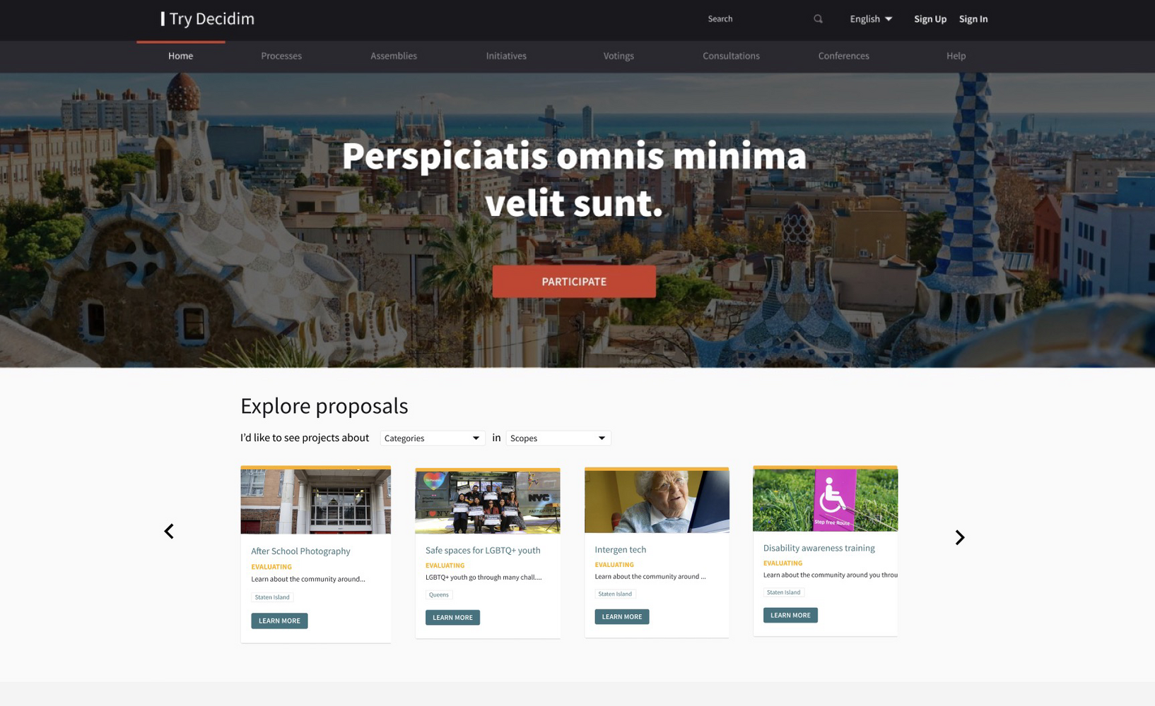 Have a new homepage block dedicated to displaying random proposals at a glance with a possibility to filter them by scope and category. It would offer users a quick sneak peek into what is being proposed in the processes of the platform, catch their interest...