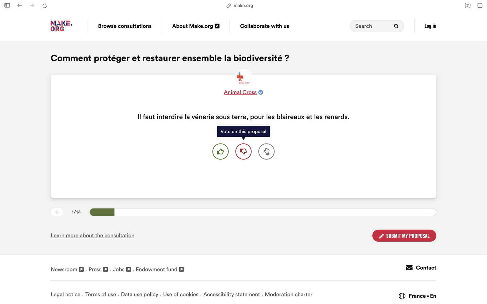 We propose an alternative, optional, simplified interface inspired by Make.org. This new interface would allow users to focus on one proposal at a time, making it easier to understand the content. It also encourages a diverse range of votes by exposing users to various proposals, not just the ones they already know or with catchy titles.